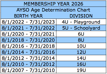 *Above registration fee includes the NON-REFUNDABLE AYSO National Membership Player Fee ($25.00)